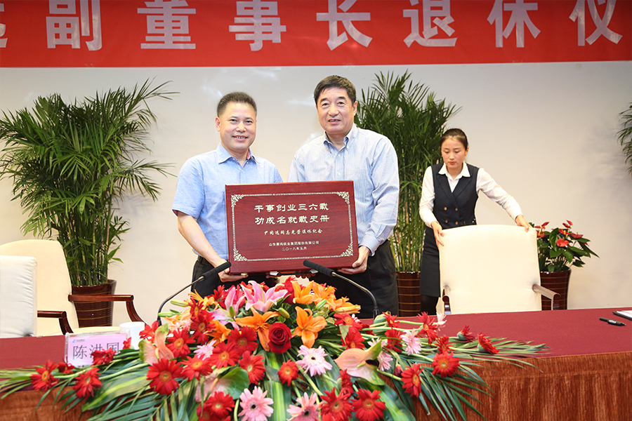 陳洪國董事長代表公司向尹同遠(yuǎn)贈(zèng)送了一份精心制作的紀(jì)念品,在紀(jì)念品的上面赫然寫著“干事創(chuàng)業(yè)卅六載,功成名就載史冊(cè)”,這體現(xiàn)了公司對(duì)他多年來工作成績的充分肯定。