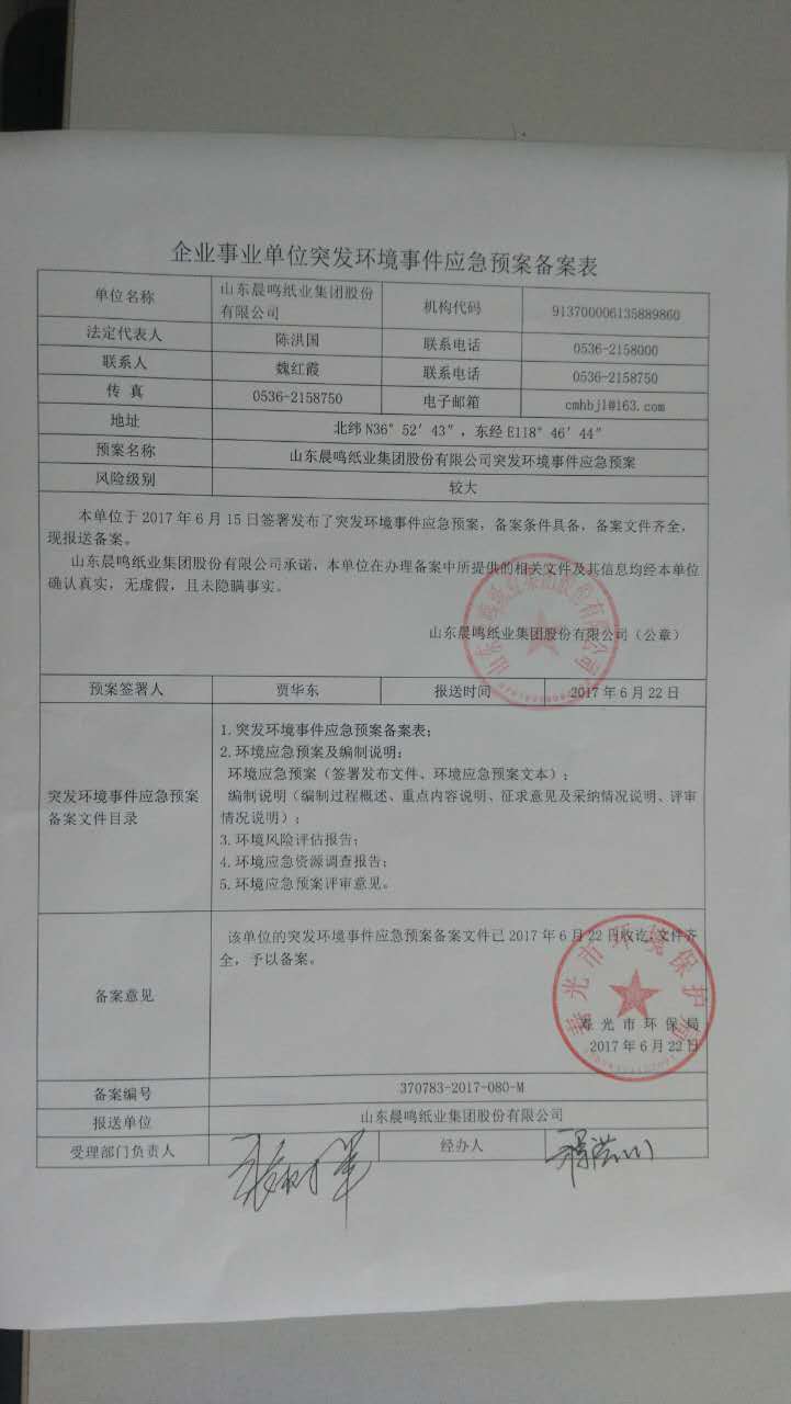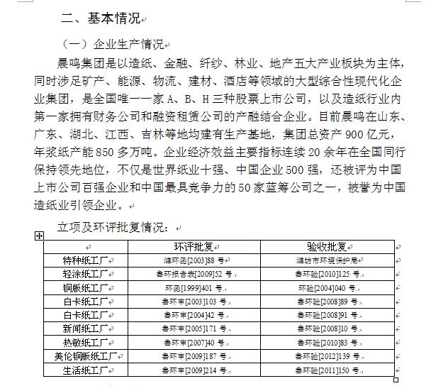 山東晨鳴紙業(yè)集團環(huán)境信息公開